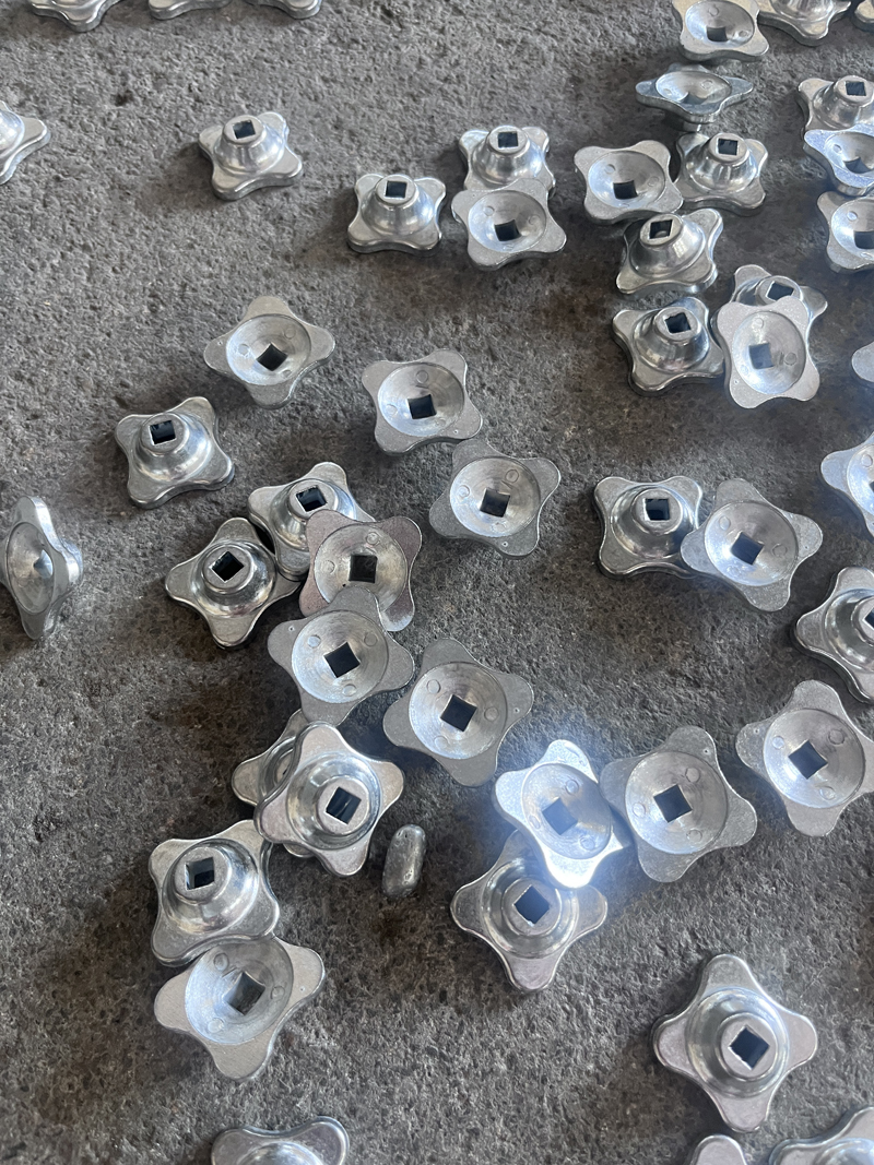 Končna barva je dosežena s posebno tehniko galvanizacije, ki ustvari značilen zaključek 'zelenega starinskega bakra'. Ta metoda je usklajena z enakimi postopki nanašanja, ki se uporabljajo za kromirana kuhinjska orodja, kot so lupilniki, stiskalniki za česen in drobilci za orehe, vendar z edinstvenim odtenkom. Namerna barvna variacija doda vizualno raznolikost in obogati oblikovalski jezik izdelka ter ponudi svežo, a nostalgično estetiko.