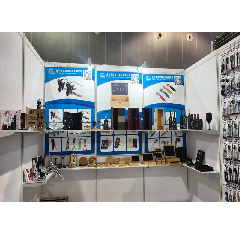 Jinhua Hanjia Commodity Co., Ltd., ki se nahaja v isti upravni regiji kot razstavni prostor in znotraj ene ure vožnje od mesta Yiwu Small Commodities City, ima neločljivo povezane prednosti regionalne gospodarske proizvodne verige. Naše podjetje je izkoristilo uspešno mednarodno poslovno okolje Yiwu za e-trgovino in izbralo sedem serij izdelkov in na stotine artiklov, primernih za domače in mednarodne platforme za e-trgovino, operaterje in podjetniki. Ti izdelki vključujejo pripomočke za dom in kuhinjo, dodatke za vino, kot so zamaški za vino iz nerjavečega jekla in zlitine, zamaški za vino, orodja za šampanjec, stiskalnice za česen, drobilce za orehe, odpirače za pločevinke, lupilce, mehčalec mesa, mešalnike za koktajle, steklenice za koktajle iz nerjavečega jekla, dekanterje za vino, lesene in PU garniture za vino, škatle za vino in drugo.